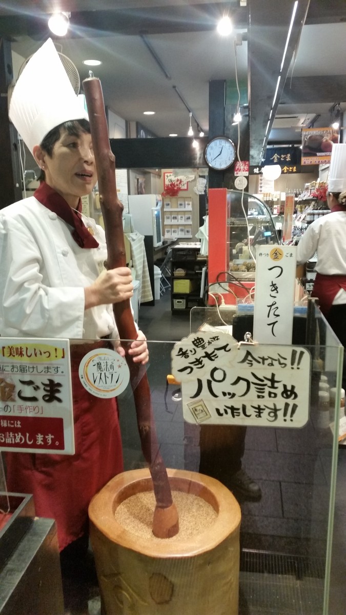 Hand ground sesame seeds at Gomafukudo.