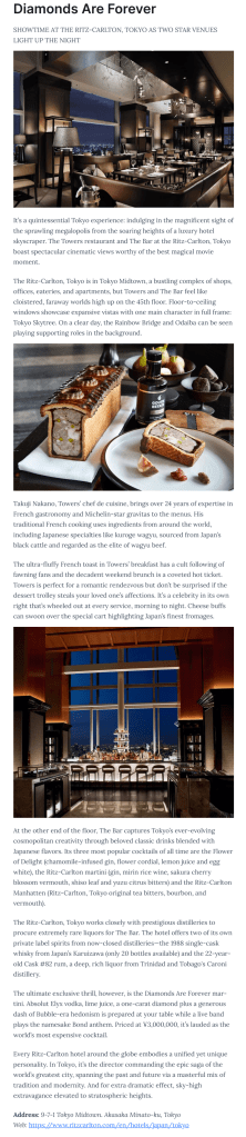 Hello! Lately, it’s been getting busier with writing work and I haven’t been updating my website much, but here’s a selection of some of my recent articles for Escape magazine. Escape is a quarterly print publication distributed in high-end outlets like hotels and limousines across Japan. Some of the stories can also be found on the Escape website.