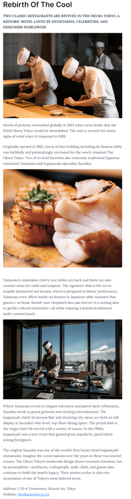 Two Classic Restaurants Return at The Okura Tokyo