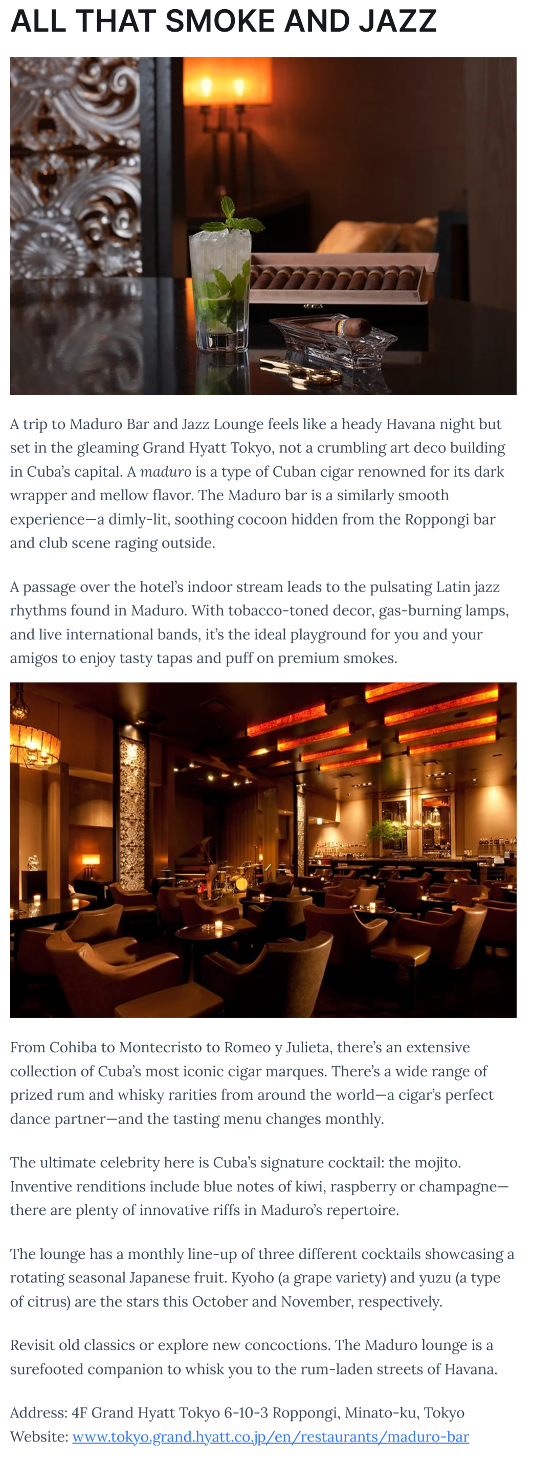 Maduro Bar and Jazz Lounge, Grand Hyatt Tokyo