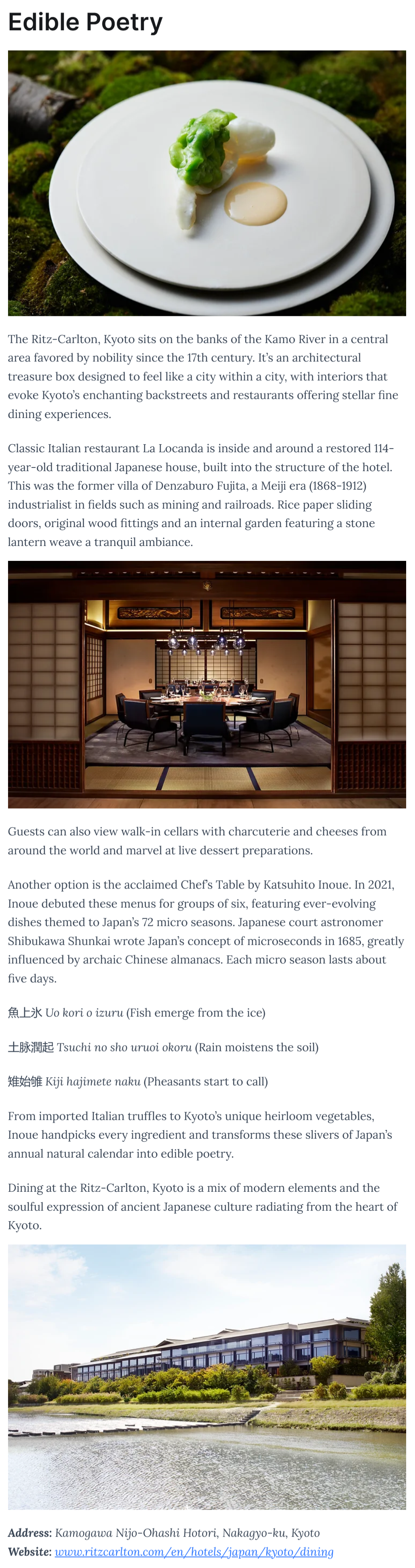 La Locanda restaurant at The Ritz-Carlton, Kyoto